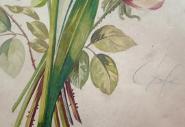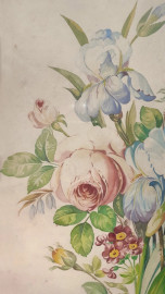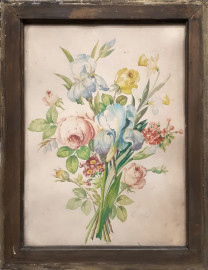 Artista dell’Ottocento, Mazzo di fiori, acquarello su carta, cm 38x28, firmato, entro cornice.