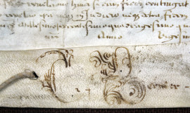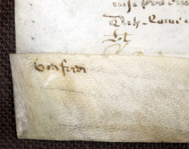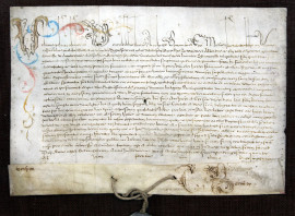 "Bolla di papa Urbano VIII diretta all'Arcivescovo di Bologna [...]", Roma, S. Pietro, 1644, cm 25,5x30,5, entro cornice e teca in vetro, (segni del tempo).