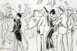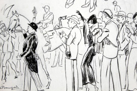 Corse alle Capannelle, tecnica mista su cartoncino, cm 32x22,5, (lievi difetti).
