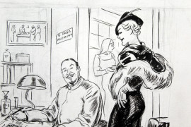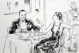 "In ufficio" ed "A cena", lotto di due tecniche miste su carta, misure max cm 22x25,5, (lievi difetti).