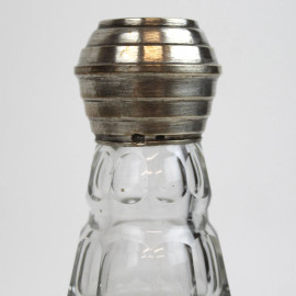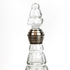 Bottiglia da profumo in cristallo con finiture in argento, art déco, cm h 25, (difetti sul tappo).