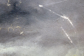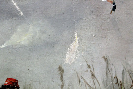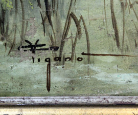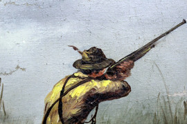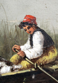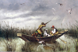 Caccia alle anatre, olio su tela, cm 60,5,x121, firmato, entro cornice.