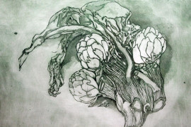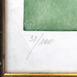 Carciofi, multiplo su carta, cm 60x70, es. 31/100, firmata, entro cornice.