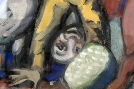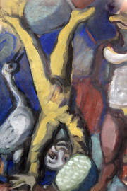 Circensi, tempera su carta, cm 57x43, entro cornice, (difetti sulla carta).