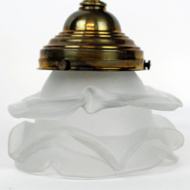 Coppia di appliques da muro in metallo dorato e vetro a foggia di fiore, cm 15x17, XX secolo, (difetti, meccanismi da revisionare).