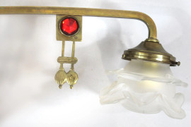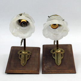 Coppia di appliques da muro in vetro e metallo dorato, cm 22x26, XX secolo, (difetti, meccanismi da revisionare).