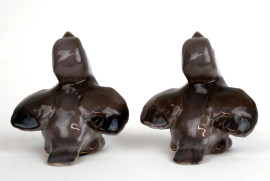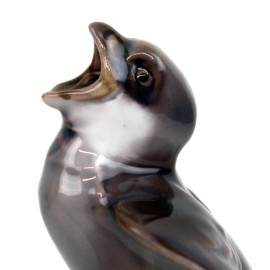 Coppia di uccellini in porcellana policroma, cm h 6,5, marcati Bing&Grondhal, XX secolo.