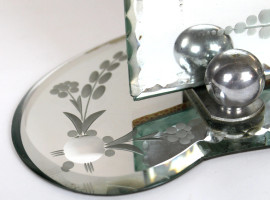 Cornice portafoto in vetro molato con decori floreali, cm h 32x35,5x11, XX secolo.