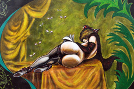 Donna sdraiata, tecnica mista su carta, cm 24x34, firmato, entro cornice.