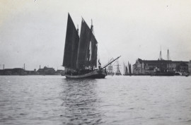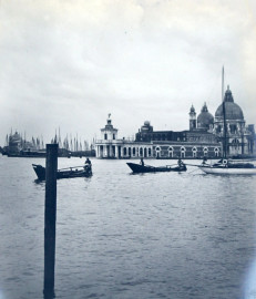 Due album in cartoncino marrone rilegato contenenti varie foto d'epoca della città di Venezia, cm h 2x17,5x25, XX secolo, (segni di utilizzo).