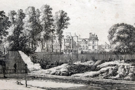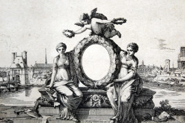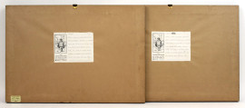 Due stampe raffiguranti Veduta della città di Parigi lungo la Senna e Veduta di Gondy, misure max cm 14,5,x26, inventore Israel Silvestre (1621-1691), entro cornici, (macchie).