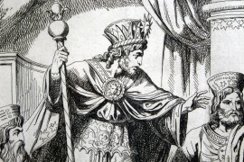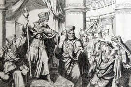 Esther al cospetto del re Assuero, incisione, cm 26,5x35, inventore ed incisore Bartolomeo Pinelli (1781-1835), entro cornice, (macchie).