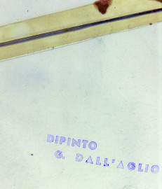 G. Dall’Aglio (XX sec.), Vaso con fiori, smalti su cartone, cm 70x50, firmato, entro cornice.