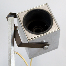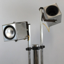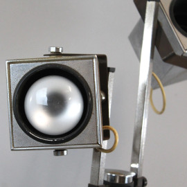 Lampada da teatro in metallo cromato, cm h 157, anni '70, (difetti).
