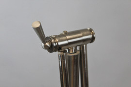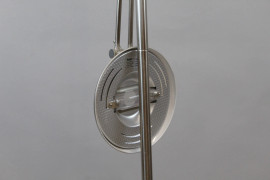 Lampada da terra in acciaio con braccio flessibile, base circolare, cm h 132, XX secolo, (difetto all'attaccatura del braccio e meccanismo da revisionare).
