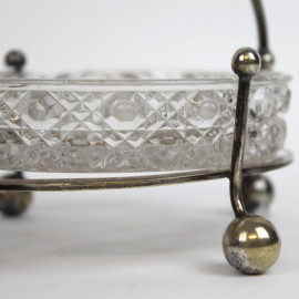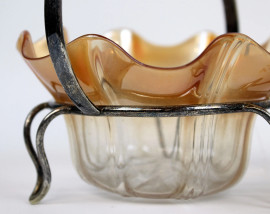 Lotto composto da due cestini portadolci ed un contenitore porta frutta sciroppata in vetro, cristallo e metallo argentato, alt. max cm 16,5, epoche diverse, (segni del tempo).
