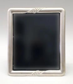 Lotto composto da quattro cornici vintage portafoto in metallo argentato, misure e decori diversi, ingombro max cm 30x25