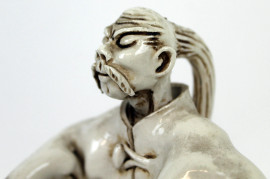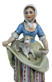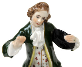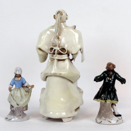 Lotto composto da tre sculture in porcellana raffiguranti popolana, nobiluomo e vecchio saggio, altezza max cm 21,5, (difetti).