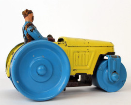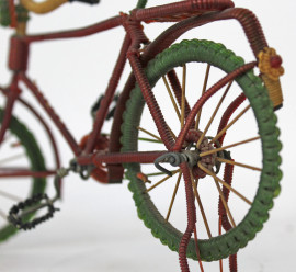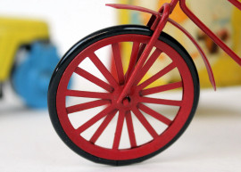 Lotto composto da un trattore ed una scatolina in latta e due modellini di biciclette, altezza max cm 12, (difetti).