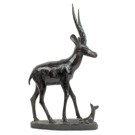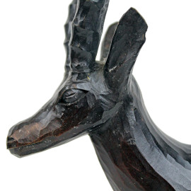Lotto composto da una scultura in legno raffigurante antilope ed una piccola statuina di guerriero con armatura in metallo dorato, alt. max cm 31, XX secolo, (lievi difetti).