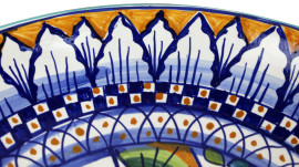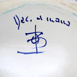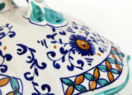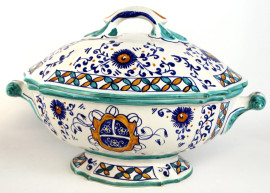 Lotto composto da una zuppiera ed un centrotavola in maiolica dipinta in policromia, alt. max cm 26, manifatture diverse, (lievi difetti).