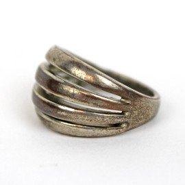 Lotto di cinque anelli in materiali diversi, (segni di utilizzo).