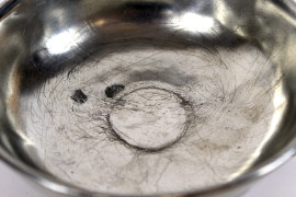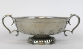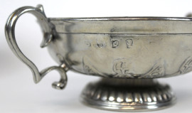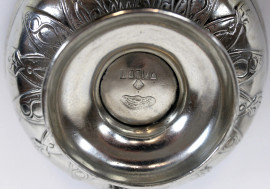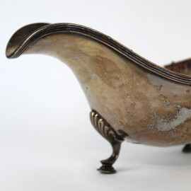 Lotto di due oggetti in metallo argentato, composto da una salsiera ed una coppetta, alt. max cm 11,5, XX secolo, (segni del tempo).