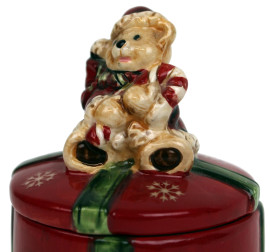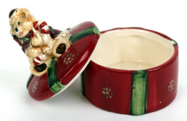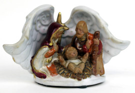 Lotto di due oggetti in porcellana, composto da un piccolo presepe ed un cofanetto natalizio, alt. max cm 11, marchio alla base.