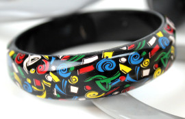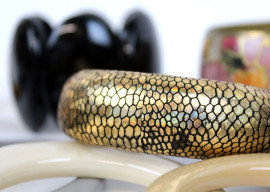 Lotto di quattordici bracciali rigidi in materiali diversi, (segni di utilizzo).