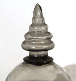 Lotto di quattro contenitori in vetro, coperchi con presa a spirale, alt. max cm 31, XX secolo, (lievi difetti).