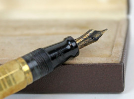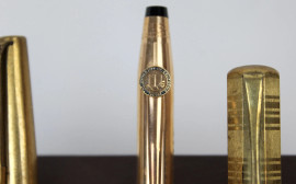 Lotto di quattro penne in metallo dorato, composto da due penne biro e due penne stilografiche, lunghezza max cm 13,5, marche diverse, XX secolo, entro custodia, (difetti).