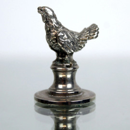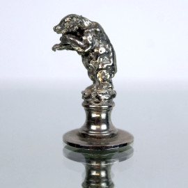 Lotto di sei fermaposto in metallo argentato raffiguranti animali, altezza max cm 3, XX secolo.