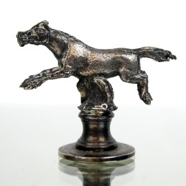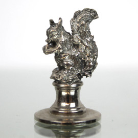 Lotto di sei fermaposto in metallo argentato raffiguranti animali, cm h 3, XX secolo.