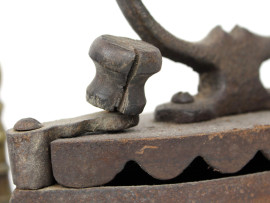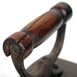 Lotto di tre antichi ferri da stiro in metallo, altezza max cm 23, (difetti).