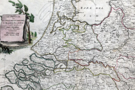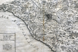 Lotto di tre stampe raffiguranti "Les environs de Rome", "Le province di Zelanda, Utrecht, Gheldria e Brabante Ollandese con la parte meridionale dell'Ollanda" e "Mons calerius", misure max 38x50, epoche diverse, entro cornici, (macchie).