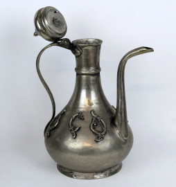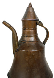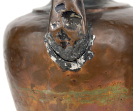 Lotto di tre versatoi in rame e peltro, alt. max cm 42, epoche diverse, (difetti).