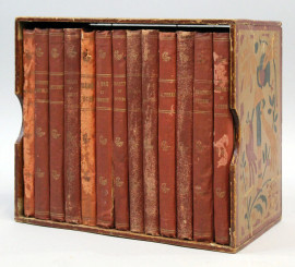 Lotto di tredici volumi diversi da "Les Maitres Humoristes. Les meilleurs Dessins, Les meilleurs Légendes, Paris, Librairie Félix Juven, 1907", entro cofanetto di legno, (difetti).
