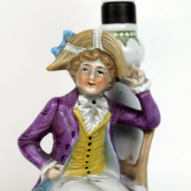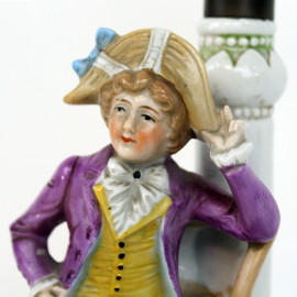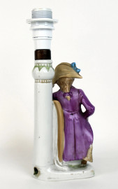 Lume da tavolo con base in porcellana policroma raffigurante fanciullo seduto, cm h 23,5, XIX secolo, (lievi difetti, meccanismo da revisionare).