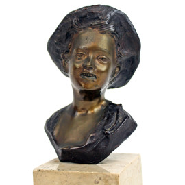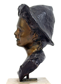 Mezzobusto di scugnizzo, scultura in bronzo, cm h 15, base in marmo, firmata De Martino.