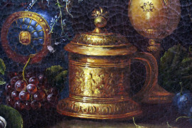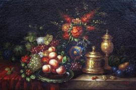 Natura morta, olio su tela, cm 60x90, firmato, entro cornice, (lievi difetti)