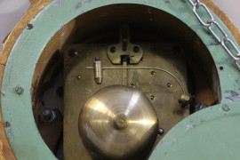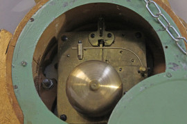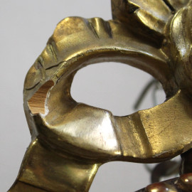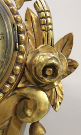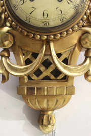 Orologio da muro in legno intagliato e dorato, fine XIX secolo, cm h 58, (meccanismo da revisionare).
