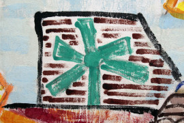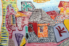 Paesaggio costiero, olio su tela, cm 90x90, firmato, entro cornice.