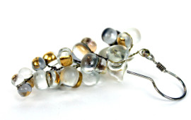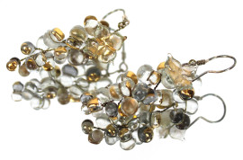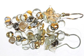 Paio di orecchini a motivi di pampini d'uva in vetro colorato, lunghezza cm 6.