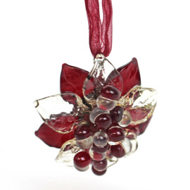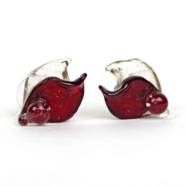 Parure collana a foggia di fiore e paio di orecchini in vetro bordeaux e trasparente, lunghezza cm 40, (lievi difetti).