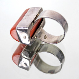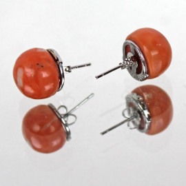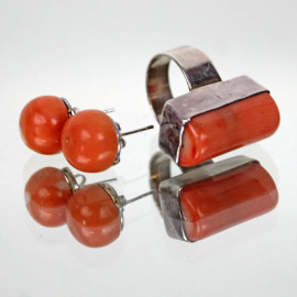 Parure paio di orecchini ed anello in argento 925 e corallo, misure max cm 3x2.