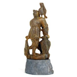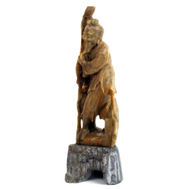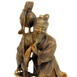 Pescatore giapponese, scultura in pietra dura, cm h 16,5, arte orientale, XX secolo, (lievi difetti).