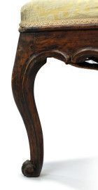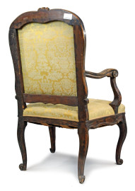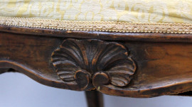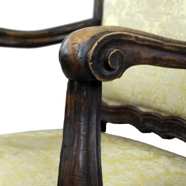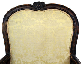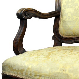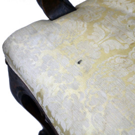 Poltrona in noce, XIX secolo, seduta e schienale rivestiti in stoffa color crema, (segni del tempo).