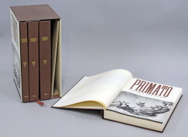 "Primato delle Lettere ed Arti d'Italia", quattro volumi, ANNO I-1940; ANNO II-1941; ANNO III-1942; ANNO IV -1943, Editalia Libreria dello Stato, ristampa anastatica 1993, entro cofanetto originale, (segni del tempo).