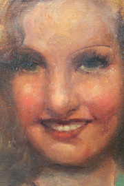 Ritratto di donna, olio su tavola, cm 41x35, firmato, entro cornice.