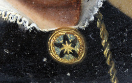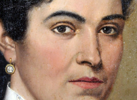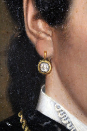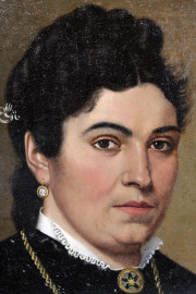 Ritratto di nobildonna, olio su tela entro passepartout, cm 29,5x22,5, firmato S.Lega a tergo, entro cornice, (lievi difetti).
